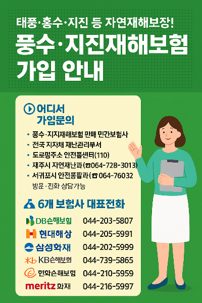 이처럼 풍수해보험과 지진재해보험은 단순한 보험을 넘어, 제주도민의 삶의 안전을 지켜주는 제도적 장치입니다. 지금 이 순간, 당신의 소중한 재산을 지키기 위한 가장 확실한 방법으로 바로 이 보험을 선택해보세요.